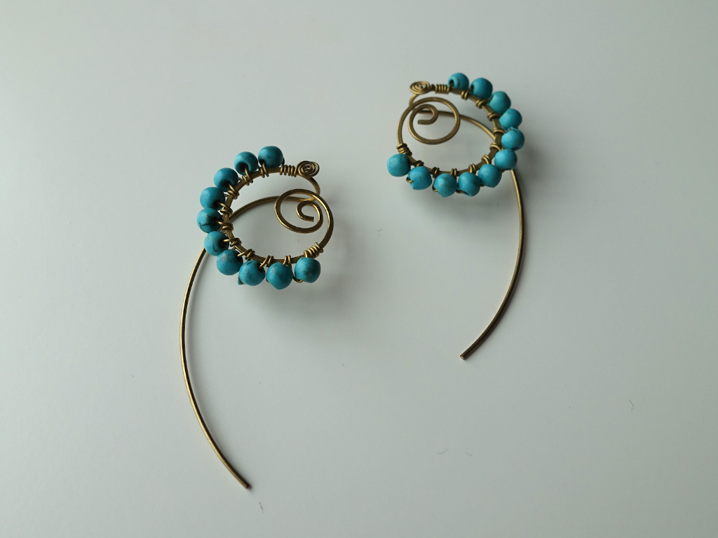 Tyto náušnice nám připomínají dovolenou, moře, cestování. Drobné tyrkysové kameny zdobí hlavní část náušnice. Rafinované provlékání dodává náušnicím na originalitě.